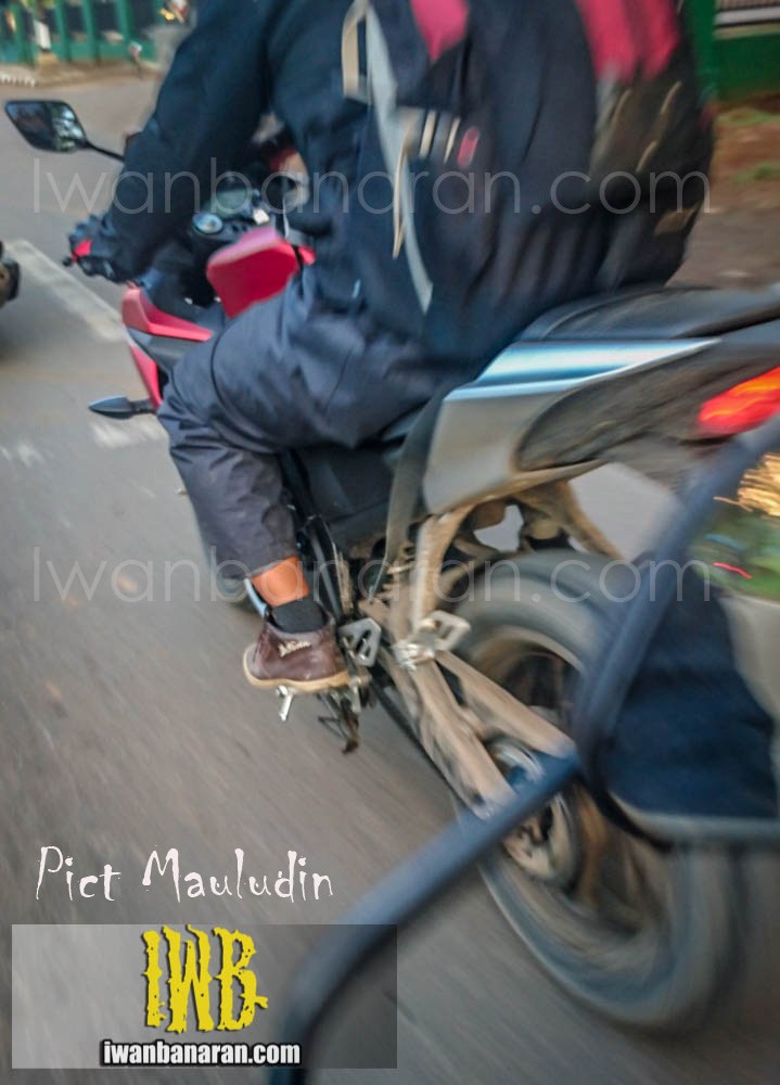 Motor yang terjepret di kawasan Karawang ini menurut pengirim surel yang kemudian diunggah oleh lek IWB ternyata terlihat lebih besar jika dibandingkan yang masih polos berwarna hitam. Jelas efek pewarnaan dua macam cat tentu akan mempengaruhi tampilan motor itu sendiri. Bisa terlihat lebih gambot atau mungkin terkesan lebih slim.