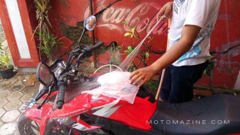 Motomazine.com – Salam safety riding bro sis… Mencuci motor dengan air bertekanan tinggi memang menjadikan motor terkesan lebih bersih karena kotoran bisa rontok sempurna. Namun tahukah anda, di balik kuatnya semprotan air dari kompresor ternyata bisa berakibat fatal bagi kesehatan motor anda sendiri.